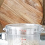 Cover and rest: I transfer the biga to a clear plastic container with a lid so I can see its progress without disturbing it. A light brush of oil inside the container keeps it from sticking.