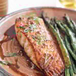 I love salmon, but sometimes I forget to put it into my weekly rotation. I will go weeks making chicken and steak, and then I cook a piece of salmon and wonder why I ever stopped. This bourbon glazed version is one that snaps me right back into it. If you want more ways to cook salmon, my honey garlic salmon is another quick favorite, and my brown sugar salmon takes a similar sweet and savory approach with a different flavor profile.