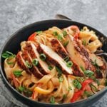 Like my Cajun Shrimp Pasta, this Cajun-inspired chicken pasta recipe embodies those same bayou roots thanks to its bold Cajun seasonings. The dish features Cajun-seasoned and perfectly pan-seared chicken, sautéed bell peppers, and a creamy sauce that ties everything together.