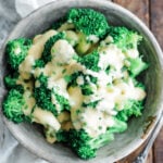 This easy Cheesy Broccoli Recipe puts a gourmet twist on the kid-friendly classic. Blanched broccoli florets are coated in a homemade cheddar cheese sauce, making it a crowd-pleasing side dish that pairs well with all your favorite meals. As a bonus, the leftover sauce is also perfect on pasta, nachos, veggies, and more.