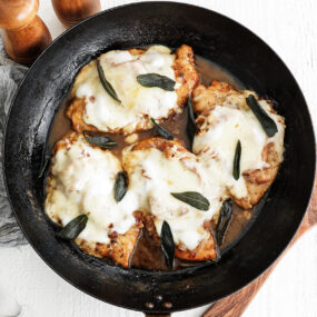How to Reheat: The best way to reheat the leftover chicken and sauce is in a 350°F oven or in a skillet over low heat. Add a splash of chicken stock to revive the sauce, then cook until the chicken is heated through and the cheese is melty again.