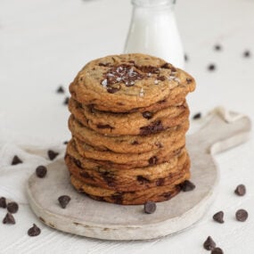 It’s bold to say, but these really are the best chocolate chip cookies ever. Most recipes end up either dry and crumbly or flat and overly sweet, but not this one. The cookie edges are perfectly crisp, the centers stay soft and tender, there are pools of melted chocolate in every bite, and the sweet-and-salty finish makes them impossible to resist.