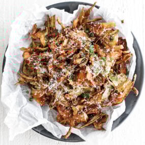 - Air fry instead: Arrange the seasoned skins in a single layer in the air fryer basket and air fry at 400°F for 10 to 12 minutes, shaking the basket halfway through.