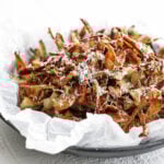 This recipe is exactly what it sounds like: seasoned potato peelings baked in the oven until crispy. It’s like a built-in snack every time you need to peel potatoes! Perfect for a pre-Thanksgiving appetizer, an evening snack, or when the game is on.
