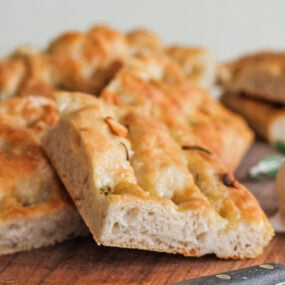 Focaccia is a classic Italian square bread known for its golden, olive oil-soaked crust and tender, airy interior. Unlike denser Italian breads like ciabatta or pane casereccio, focaccia is light and delightfully fragrant. This makes it perfect for snacking, dipping, or serving alongside a meal.