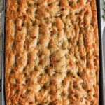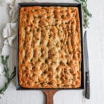- Prevent dry focaccia: Two things can dry out focaccia—not enough olive oil and overbaking. Be generous with the oil (both in the pan and drizzled on top), and bake until it’s golden but not deeply browned. Once it’s done, transfer it immediately to a cooling rack to prevent the steam from turning the crust soggy.