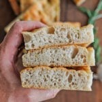 What sets this focaccia bread apart is the use of a biga, or pre-ferment, which develops deep, complex flavors and a strong gluten structure while keeping the crumb open and airy. Once baked, the dimpled surface forms little pockets that soak up olive oil, rosemary, and garlic. Simply put, focaccia delivers a perfect trifecta of golden crunch, tender crumb, and rich, savory flavor that other Italian breads just can’t match.