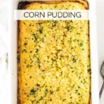 Corn pudding is a creamy dish of corn baked with eggs and milk where it takes on the form of a firm custard, similar to a crème Brulee. It’s a staple recipe in the south and is commonly served up at Thanksgiving and Christmas but can absolutely be served all year long. There are several different variations of this dish that include using things like creamed corn, but I prefer the simple version of this recipe.