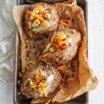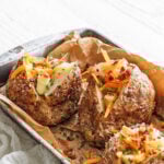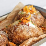 Impress your family and friends with this Jacket Potatoes Recipe. These British-style baked potatoes are crispy and golden on the outside, and pillowy-soft on the inside. I like to serve them with small bowls of toppings so everyone can customize their own.