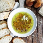 As a homemade bread enthusiast, I’ve been making this easy bread dip for years. I like to serve it before an Italian family dinner with crusty bread, like ciabatta, a baguette, focaccia, or sourdough, to warm up our palates. I’ll show you how to make my easy 6-ingredient version and share even more flavor variations for days when you feel like mixing things up.