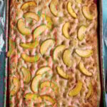 Make-Ahead: After the focaccia has finished its first rise, you can keep it covered in the fridge for up to 1 day. The baked peach focaccia will also stay moist and sweet for up to 1 day before serving. Please note that the sugar topping will make the bread slightly soggy over time.