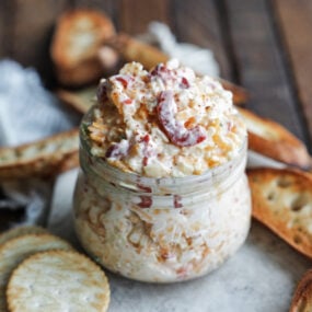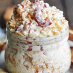 This no-cook Pimento Cheese Dip is an easy 10-minute snack with a rich, creamy base and a ton of tangy pimentos throughout. I love it both as a quick meal and a party appetizer. It’s always a hit when I pair it with crackers and veggies on game days and at parties.