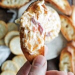 The most important tip I can give you is to let the assembled dip chill before serving. I know, I know… It’s too good to resist! But by refrigerating the dip for at least 1 hour, you’ll have better-developed flavors and a thicker, more spreadable consistency. Keep those thick, sturdy crackers close so you can start scooping as soon as the dip is ready.