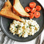 - Avoid overcooking: Sometimes I’ll cook these eggs a little longer when I’m craving larger, firmer curds, but ideally they’ll be soft, a little runny, and just starting to hold together when the pan is pulled from the heat. It’s best to err on the side of underdone because even a minute too long can kill the creaminess.