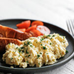 - Cream – I use heavy whipping cream to cook soft, custard-like scrambled eggs. The fat in the cream softens the egg protein structure, yielding that signature silky texture. Half-and-half or whole milk will work as substitutes, but your eggs won’t be as rich.
