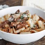 I like using fresh or dry pasta for this dish, but I always recommend a wider shape like pappardelle or a tubular pasta like rigatoni to catch all that incredible sauce. And for the perfect finishing touch? I toss everything with finely grated Parmigiano Reggiano, it melts right in and adds the most amazing flavor!