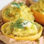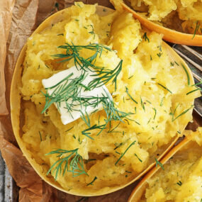 - Toss with butter, dill, salt, and pepper. Serve as is or serve in the hollowed-out squash shell.