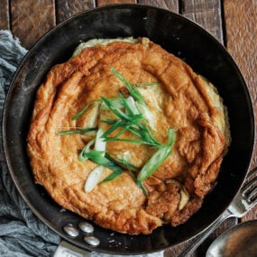 How to Reheat: I like to gently warm up the omelette in a skillet over medium heat for a few minutes to restore its crunchy texture. Microwaving works, too, but it will soften the edges, so it’s my last resort.